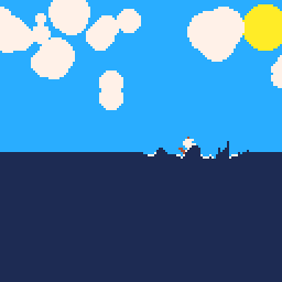 It started as a basic re-implementation of an earlier piece of work put together in Unity, but has since grown into something a bit more complex. Below is a more recent .gif of this water+ship program, now featuring someone I've taken to calling Wiggly Pete.