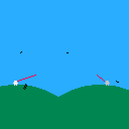 A throwback to many archery flash games I played as a kid, the exact trajectory and power of their shot is hidden from the player to encourage learning the games mechanics by trial and error. The AI on the other hand fires randomly is the direction of the player with varying success rates. Some games result in the AI landing the first shot they fire, other times the player has a good minute or so to fire back.